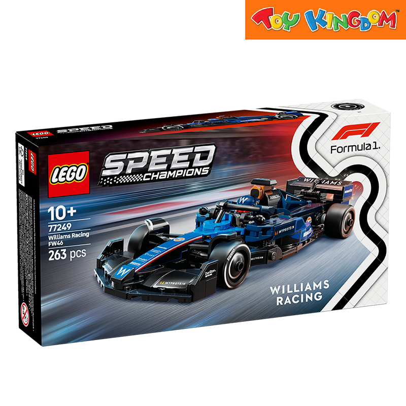 The vehicle kit includes a driver minifigure wearing a Williams Racing outfit and a winged helmet for kids to place inside the cockpit and role-play thrilling race action Authentic Williams Racing details.