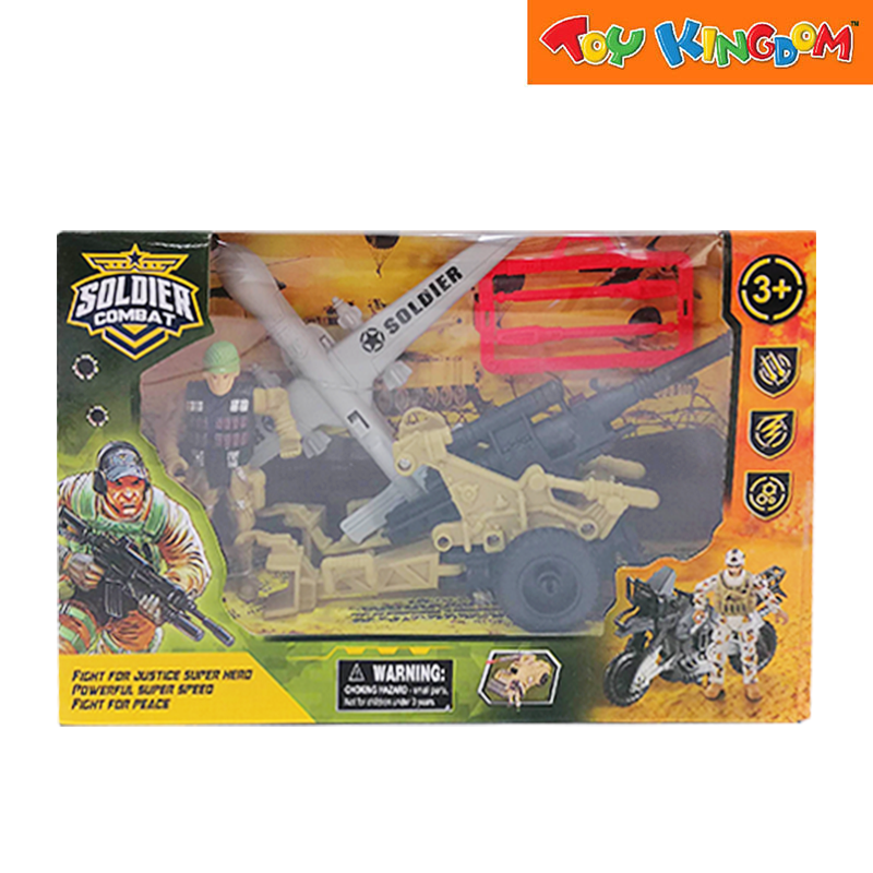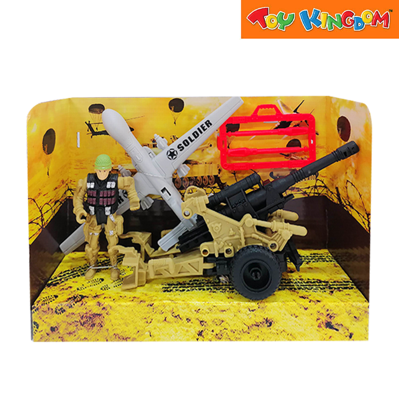 Recommended for ages 3 years and up Material/s: Plastic Military set One soldier+ drone+ howitzer vehicle Military Static model Color and packaging design may vary