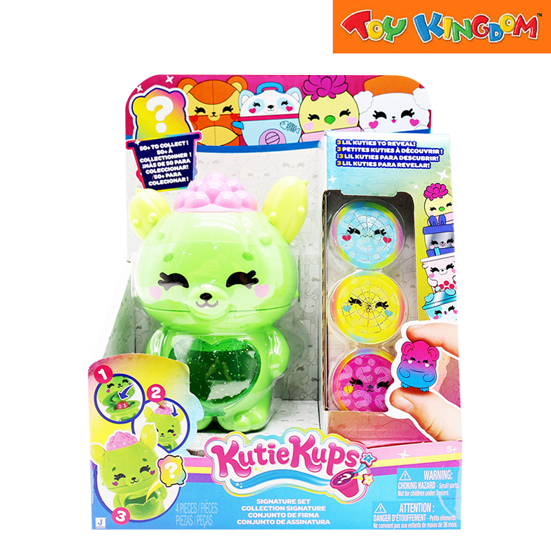 Inspired by a capsule coffee maker; users insert a colorful "Kup" into the larger character-shaped dispenser, press down, and a surprise "Lil Kutie" micro-figure is revealed from the belly compartment.