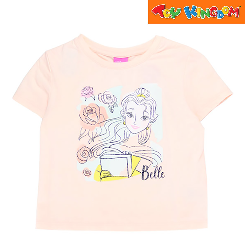 Disney Princess Belle Dolman Sleeves Boxy Tee with Spot Print And Glitters Accent