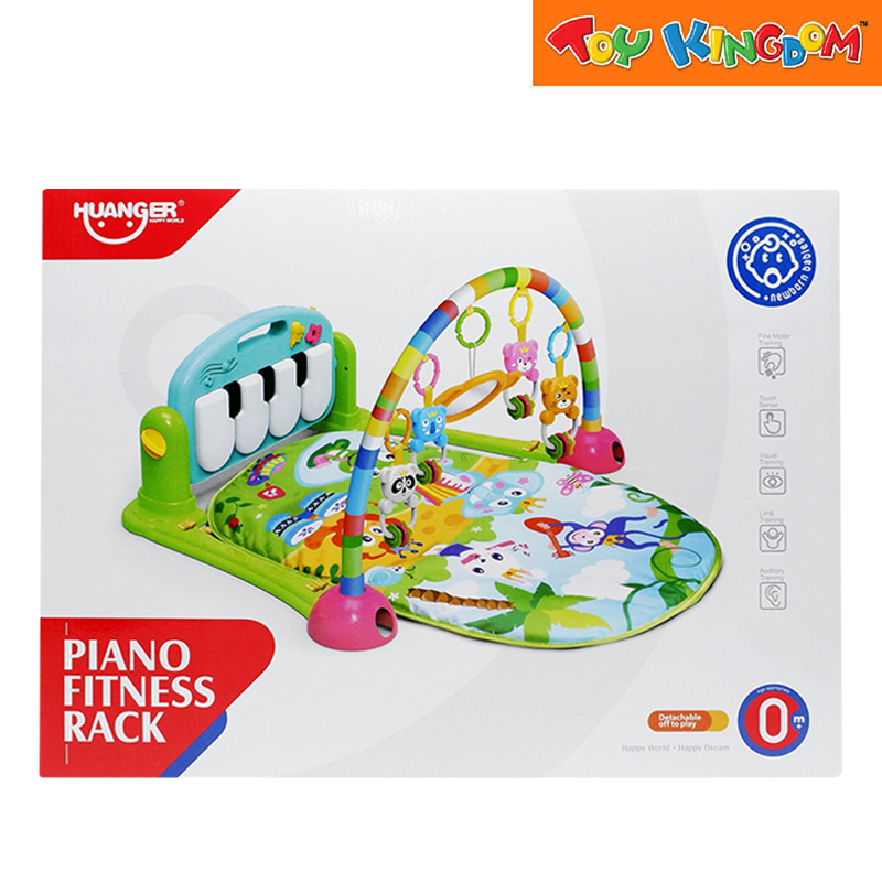 The Huanger Piano Fitness Rack combines a soft play mat, hanging toys, and a piano keyboard to support early development.