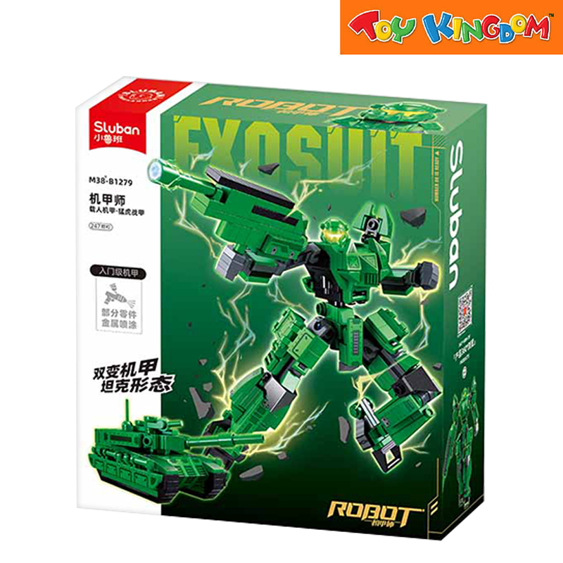 Recommended for ages 3 years and up 247 pieces included 2-in-1 design, allowing it to transform between robot and tank forms. Color and packaging design may vary