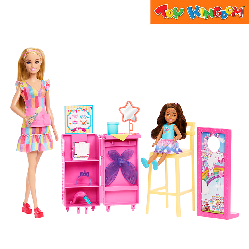 Stop by this Barbie Day at the Fair playset packed with color-change face painting, photo-taking, and dress-up fun!