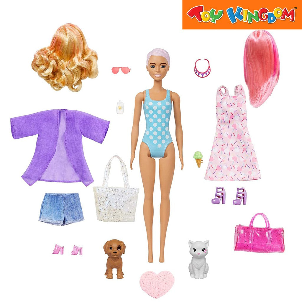 Barbie Color Reveal dolls offer the ultimate treat with 25 surprises and tons of transformation - kids unpack this multi-piece set to find a Barbie Color Reveal doll, 2 Color Reveal pets, 2 complete looks, and 8 color-changing features that include 2 long hair wigs.