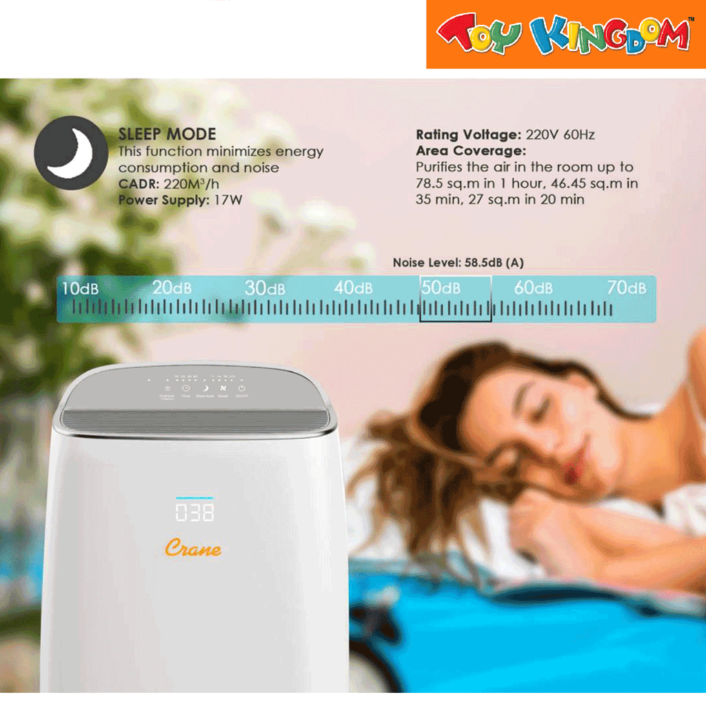 Helps remove pollutants from air in your home. 4 stages filtration: Pre Filter, True Hepa Filter, Active Carbon Filter and Germicidal UV lights. Pre Filter: intercept hair, dander and other large pollutants. True Hepa Filter: filter captures up to 99.97% of airborne dust and pollen as small aas 0.3 microns. Area coverage: 78.5 sqm in 1 hour, 46.45sqm in 35 min, 27sqm in 20 minutes.