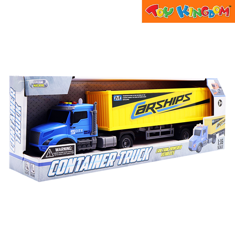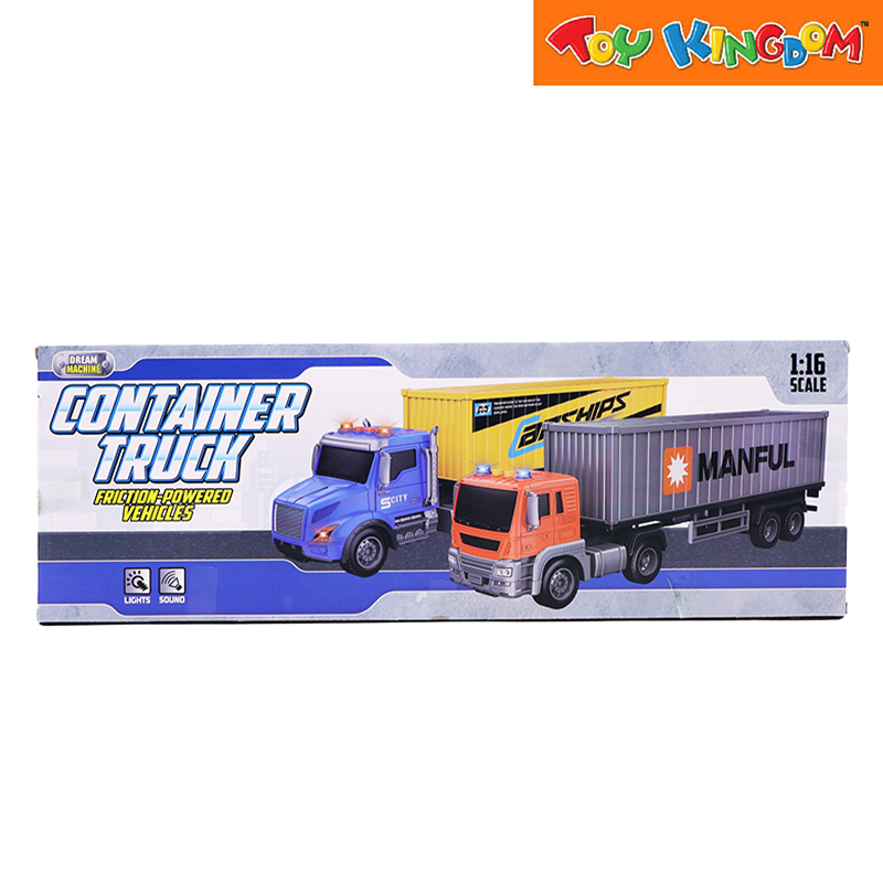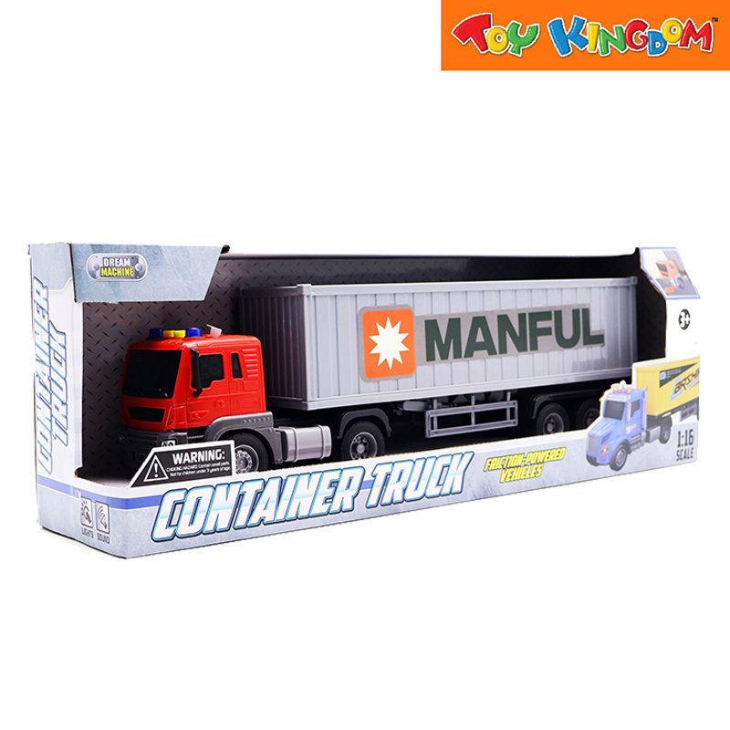 Dream Machine container hauler with a bold red front cab and gray trailer, ideal for collectors or imaginative play.
