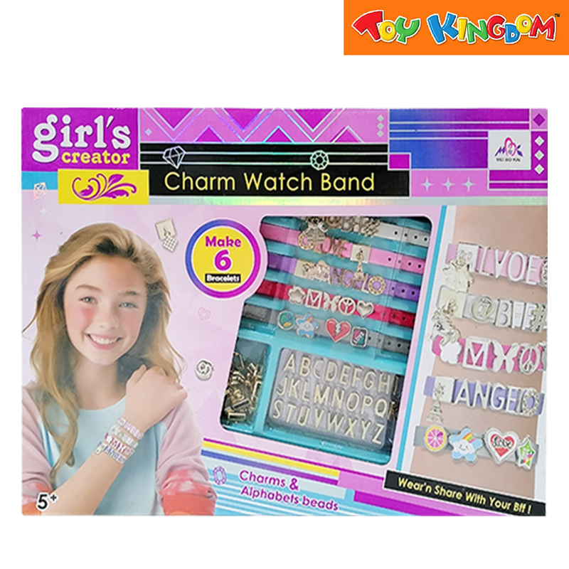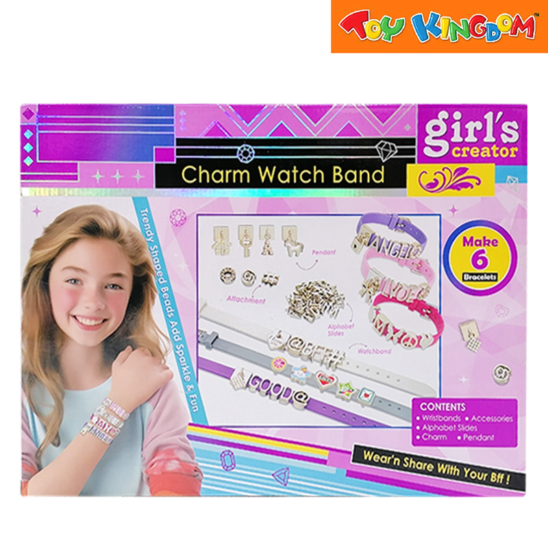 Recommended for ages 5 years and up Material/s: Plastic Gril's DIY Jewelry set Charming Watch Band Include Wristbands,Alphabet Slides,Charm,Pendant Trendy shaped beads add sparkel & fun Color and packaging design may vary