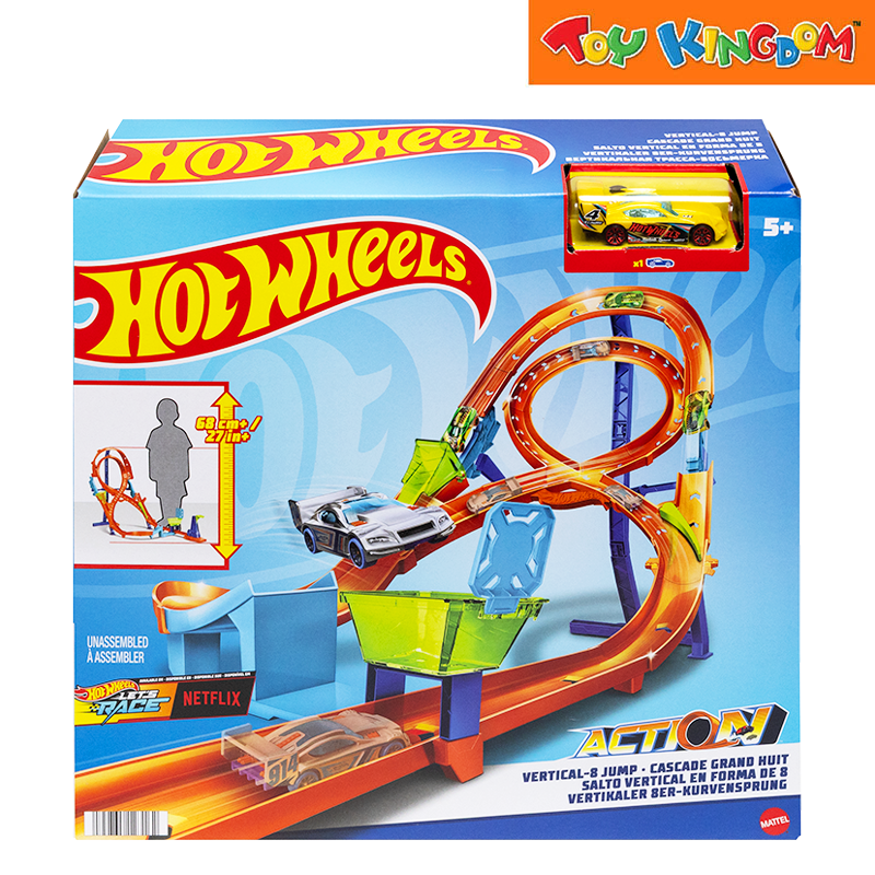 Choose from 2 different paths each with their own unique features to race and stunt in the Hot Wheels® Action Vertical-8 Jump track set.