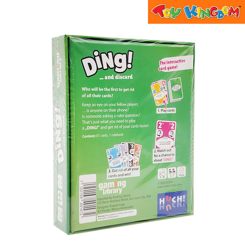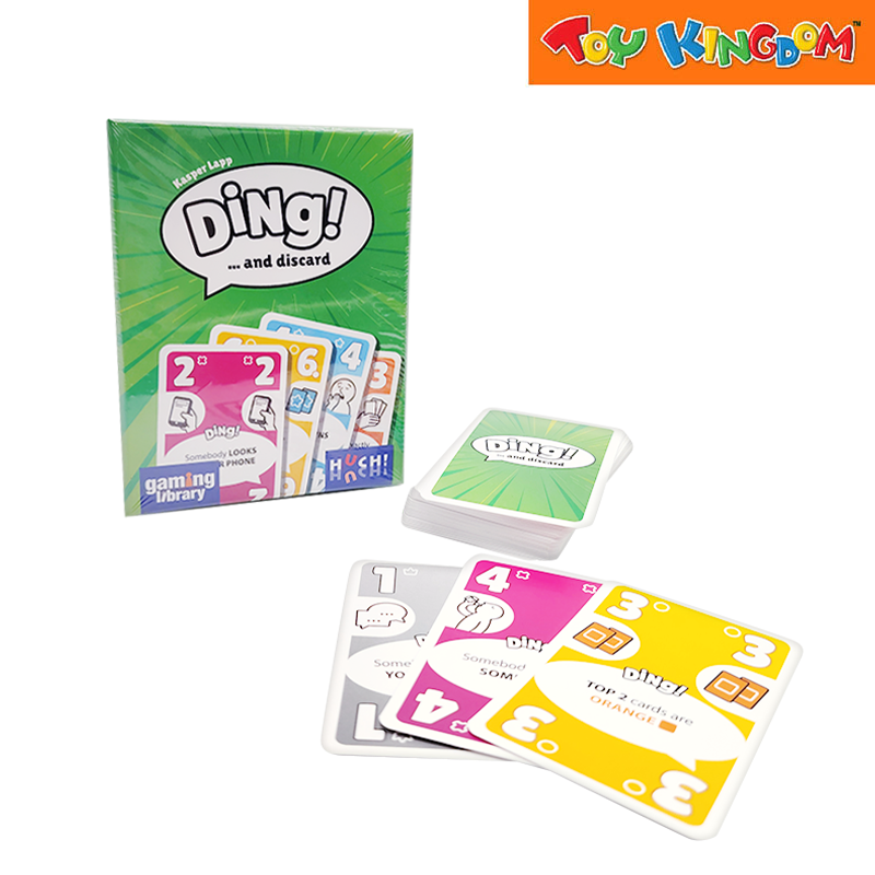 Say "DING!" and play a card onto the discard pile: If you see that the requirement on one of your hand cards has been met, you can immediately shout "DING!" and play this card face-up onto the discard.