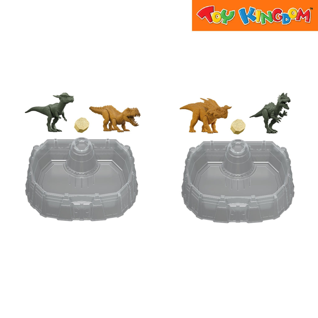 Collectable. Fans can collect all the different 2-packs for multi-dinosaur battle play. Each pack of 2 Dinosaurs, 1 Battle Arena and 1 sponge sold separately, subject to availability.