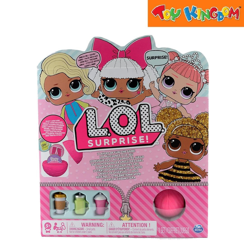 - Includes gameboard, spinner, 7 L.O.L. game balls, 4 accessories, 4 movers, 4 mover stands, 28 tokens, 4 collectible cards, complete instructions