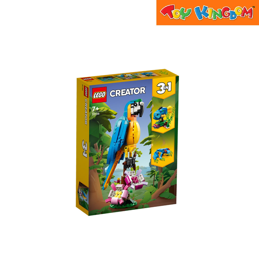• 3in1 exotic animal toys – Kids aged 7+ can step into a rainforest with the LEGO® Creator 3in1 Exotic Parrot (31136) playset, featuring a parrot, a fish and a frog