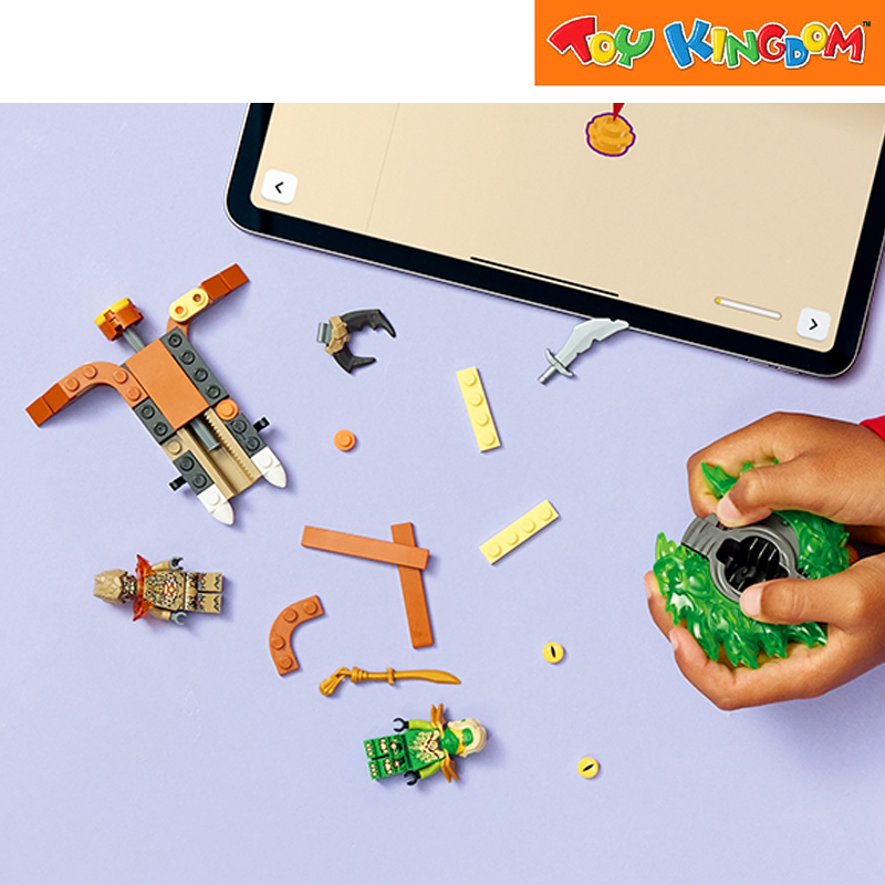 This 52-piece make-believe toy has a spinner toy with a launcher and an Earth Monster minifigure, which together are over 2.5 in. (6 cm) high, 4 in. (11 cm) long and 3.5 in. (9 cm) wide