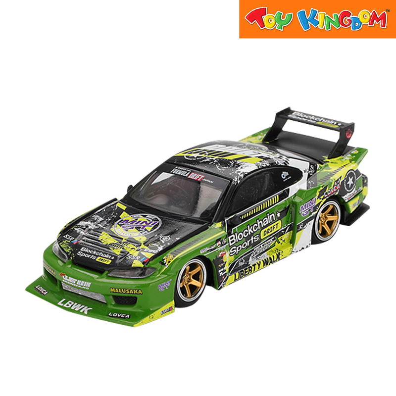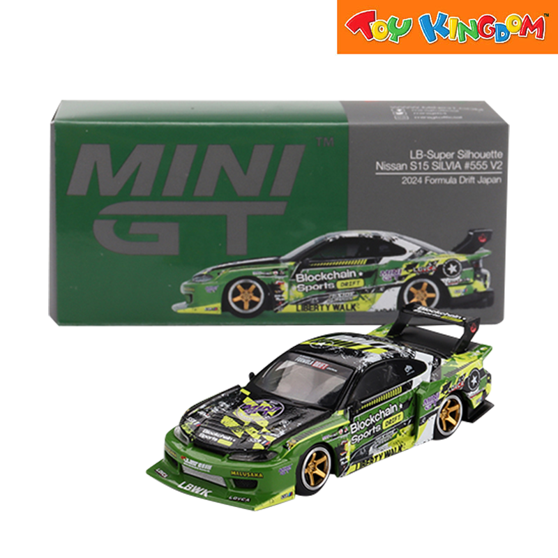 Design: Features the Liberty Walk (LBWK) V2 widebody kit with the signature green #555 livery used by driver Fausto Racing.