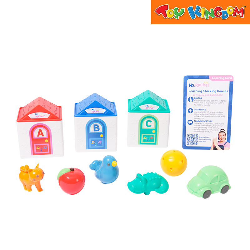 Find out what’s inside with the Learning Stacking Houses with sculpted details and surprises to gamify learning about colors, letters, and more