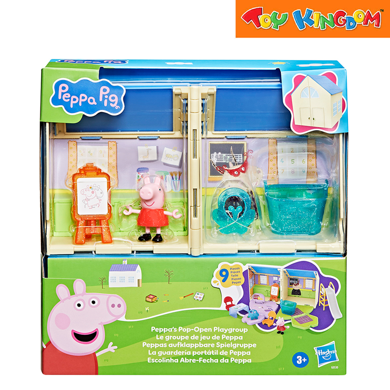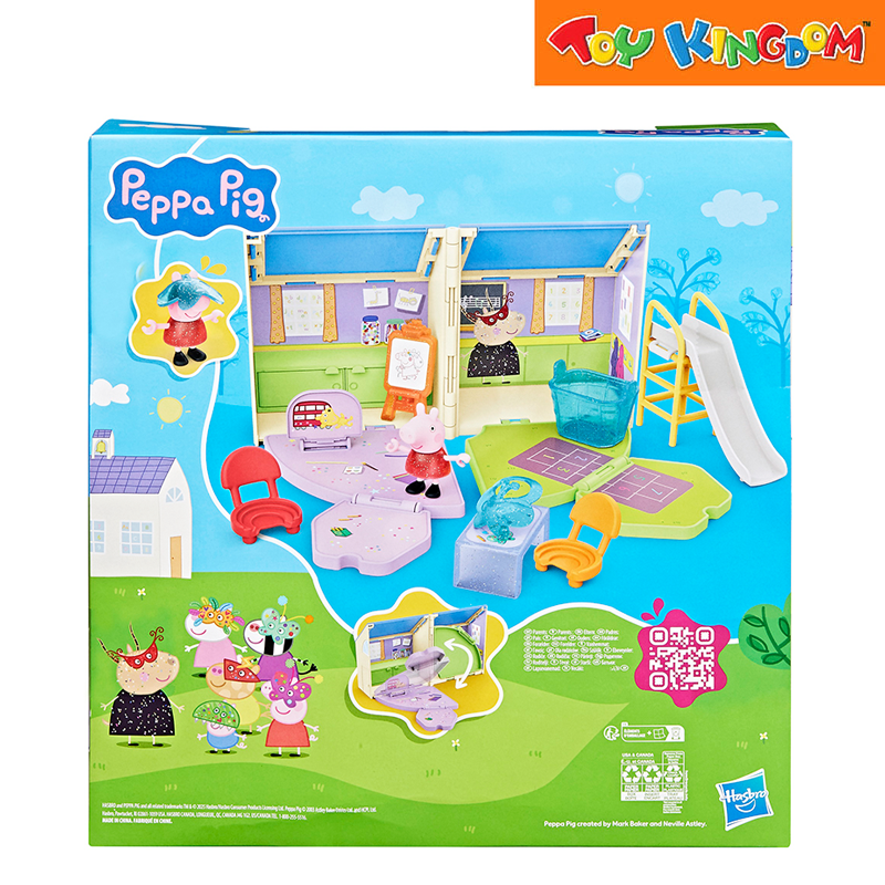 Fold-open playgroup playset that reveals a classroom and playground scene for Peppa’s imaginative school adventures.
