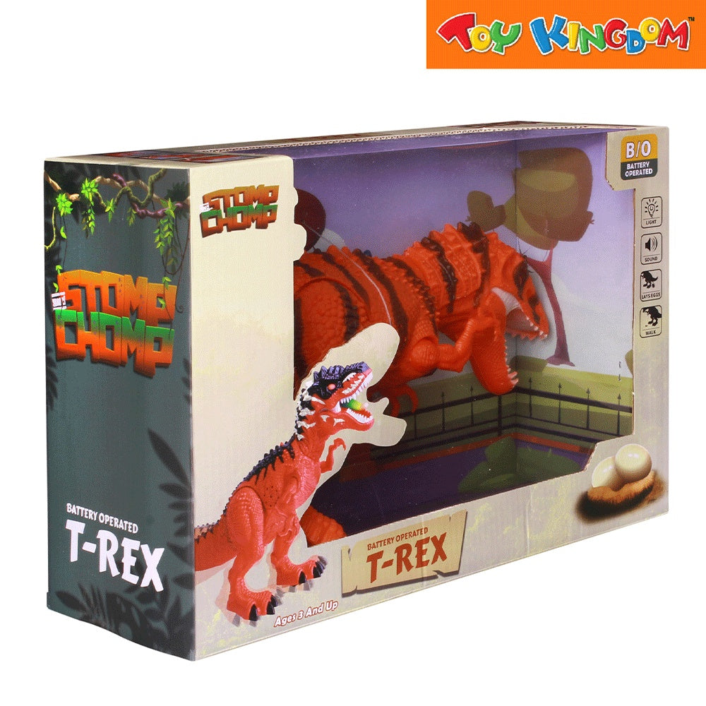 Stomp and Chomp T-Rex can walk forward, swing his head and lay eggs