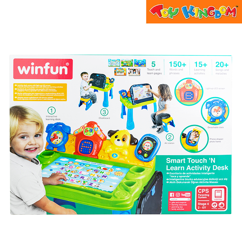 Activity desk comes with 150+ words and phrases, 15+ learning activities, and 20+ songs and melodies; 5 touch and learn pages each with different learning activities